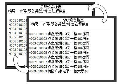 選中某一回路,按下“確認”鍵,將顯示這一回路注冊到的各設備的信息,最上一行的設備高亮顯示;按任意數字鍵高亮消失,控制器處于總線設備檢查狀態
